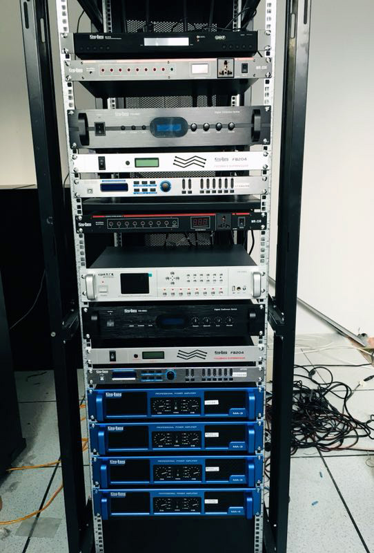 會議室擴聲系統(tǒng)參照國家相關(guān)設(shè)計標(biāo)準(zhǔn)進行設(shè)計,保證會議室在哪個角落都能夠聽得清楚,保證了會議室能夠滿足客戶的需求:功放功率嚴(yán)格按照音箱功率的1.5倍進行設(shè)置;設(shè)置有12路調(diào)音臺、均衡器和反饋抑制器等一系列專業(yè)設(shè)備,保證有優(yōu)秀的音色效果。