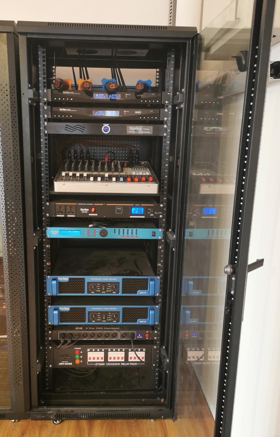 京邦電子(KING-BANG)京邦技術(shù)工程師通過對多媒體教室的布局環(huán)境分析,對音響設(shè)備進行合理的布置與連接,并安裝的音響設(shè)備,可以使聲源和音響系統(tǒng)末端——音箱同處于一個聲場區(qū)域內(nèi),使觀眾能感受到聲源的真實存在,達到高保真重放的擴聲要求。且達到多媒體教室音響以自然聲為主,要求擴散性良好,聲場分布均勻,響度合適,自然度好等要求。