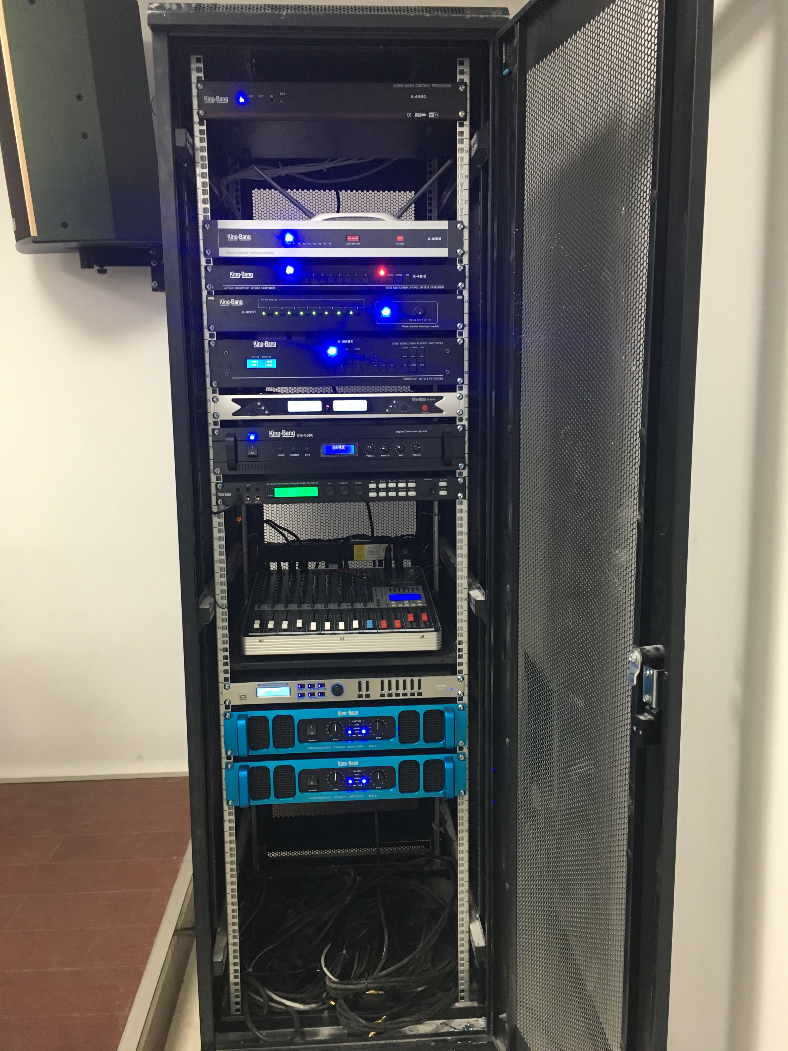雙通道專業(yè)功放(PA-4)、10路調(diào)音臺(tái)(M10RUD)、專業(yè)數(shù)碼HI房卡拉OK前級(jí)(X5)、音箱處理器(DP26),專業(yè)音箱(KB-12)等。