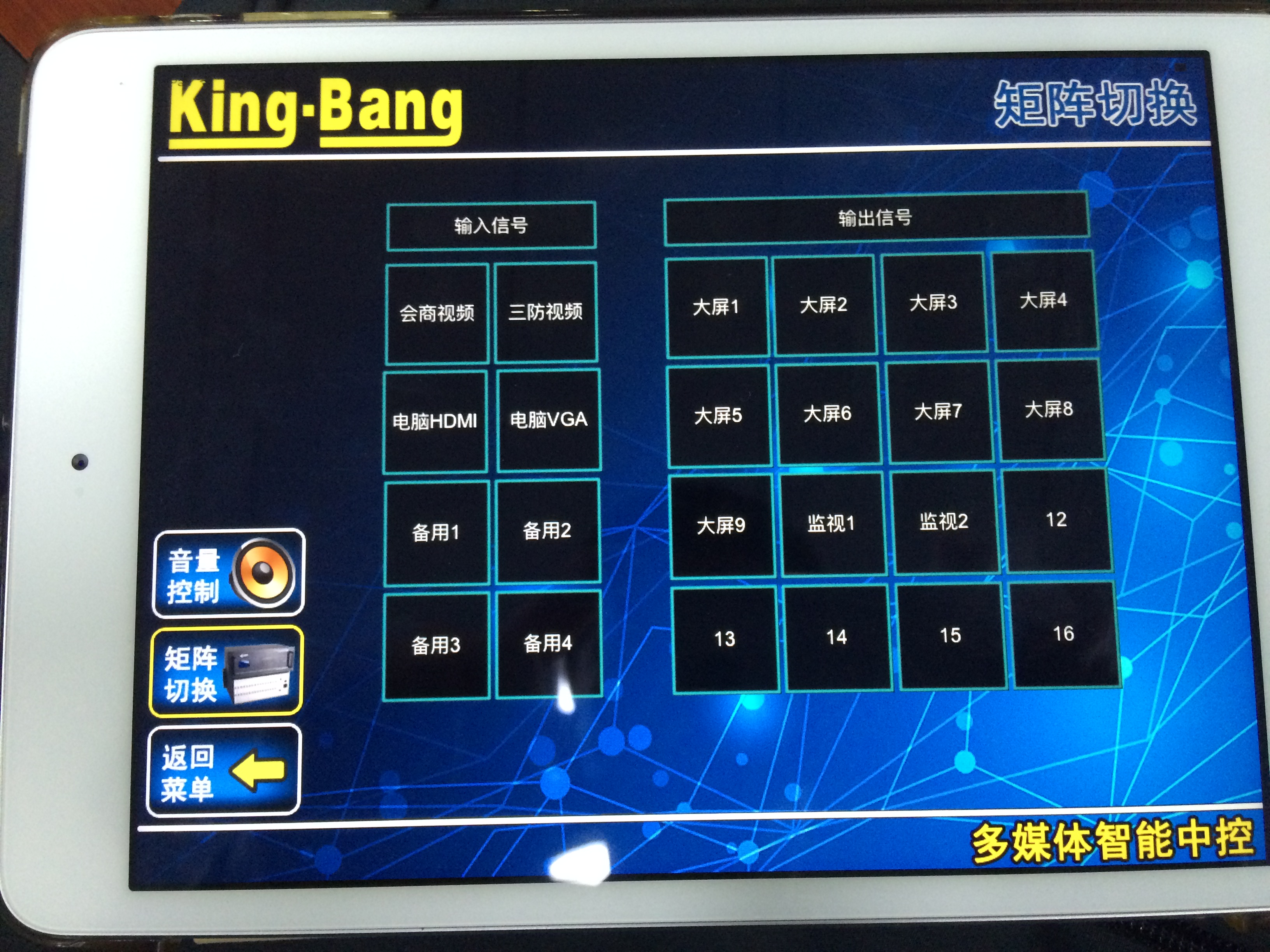 京邦電子(KING-BANG)以用戶為中心,根據茂名市化州氣象局會議室現場情況,并結合客戶需求,提出了一套完美的智能會議中控解決方案。京邦電子(KING-BANG)提供解決方案是采用的是可編程中央控制主機K-4960作為會議室控制系統的核心運算主機,對會議室的聲、光、電設備的操控進行整合,然后經過程序編寫將所有的控制集中到觸摸屏控制界面,搭配京邦電子(KING-BANG)其他中控周邊設備,完美實現一鍵智能化控制。