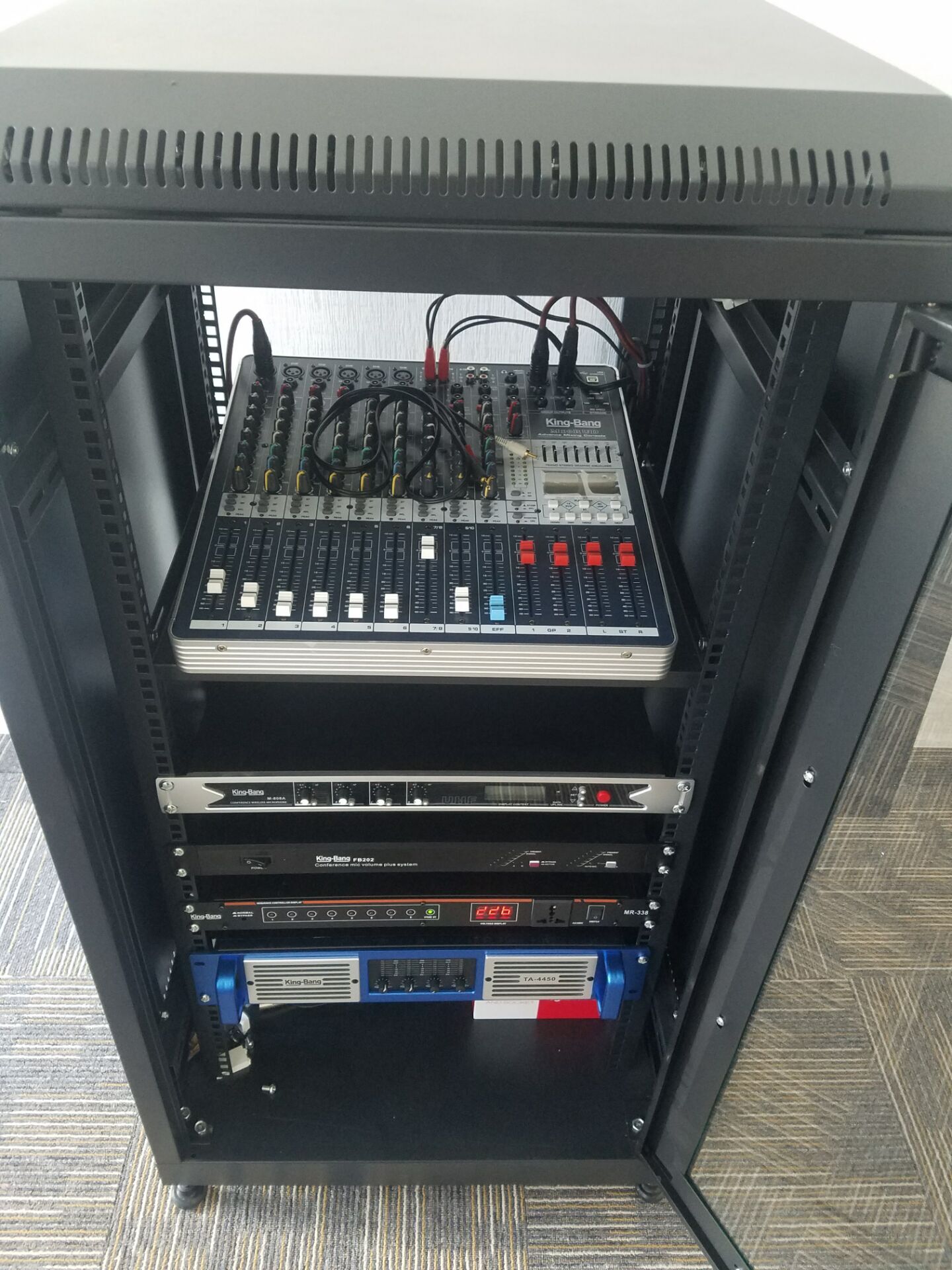 專業擴聲系統簡單來說就是把聲音信號放大,主要由聲源、音頻處理設備、功放及揚聲器系統組成。通過計算會議室的音響場地系數進行設計,保證會議室每個角落的聲場聽覺均勻,音響效果達到語言清晰、無失真、聲場分布均勻。