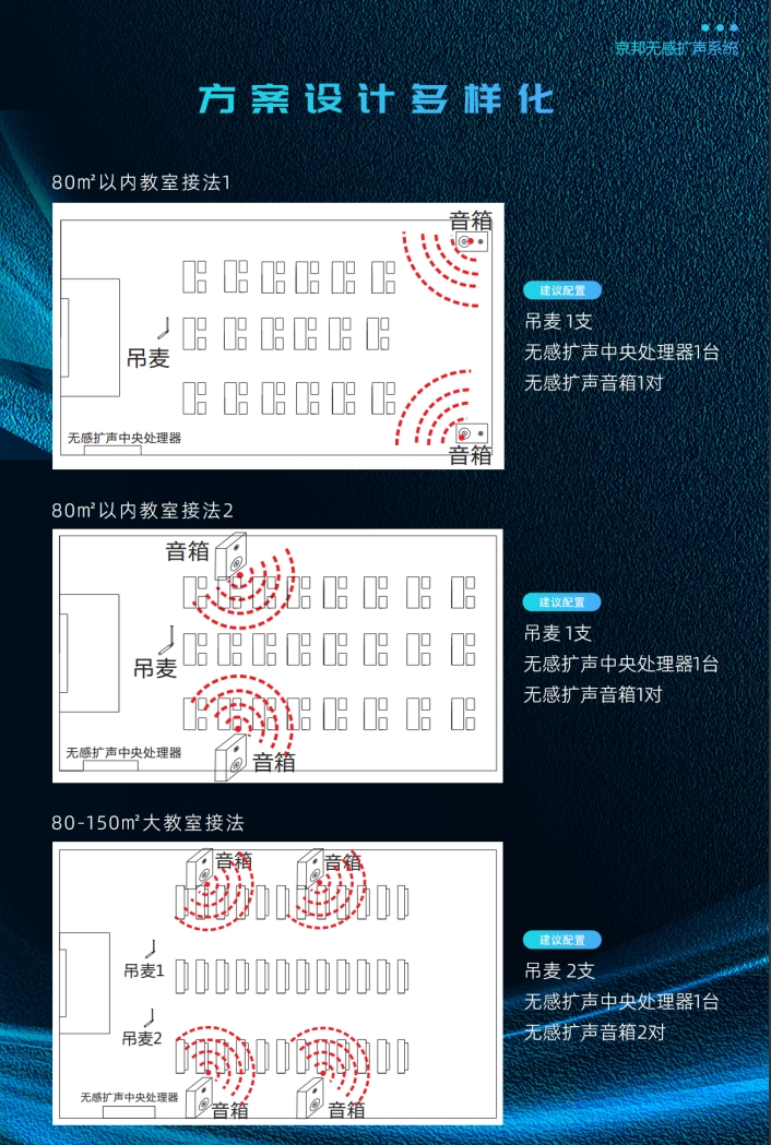 采用無接觸拾音設(shè)備,更安全舒適,讓老師在教室中不再被束縛,解放雙手,自由行走在教室中,活動范圍無限制,無需繁瑣的調(diào)試準(zhǔn)備,授課過程輕松暢談,讓聲音傳播到教室內(nèi)的每個角落,可以更加專注于授課內(nèi)容